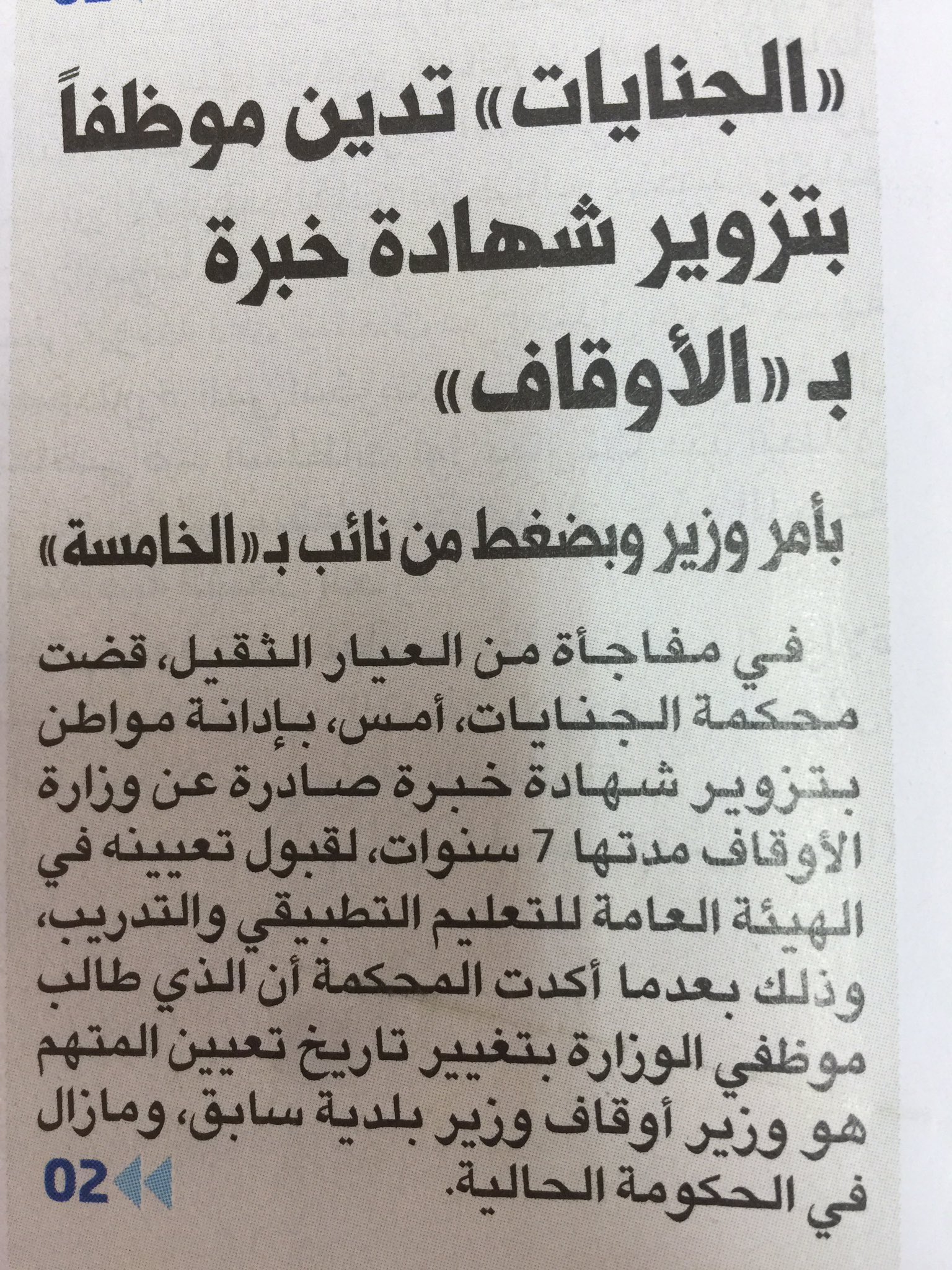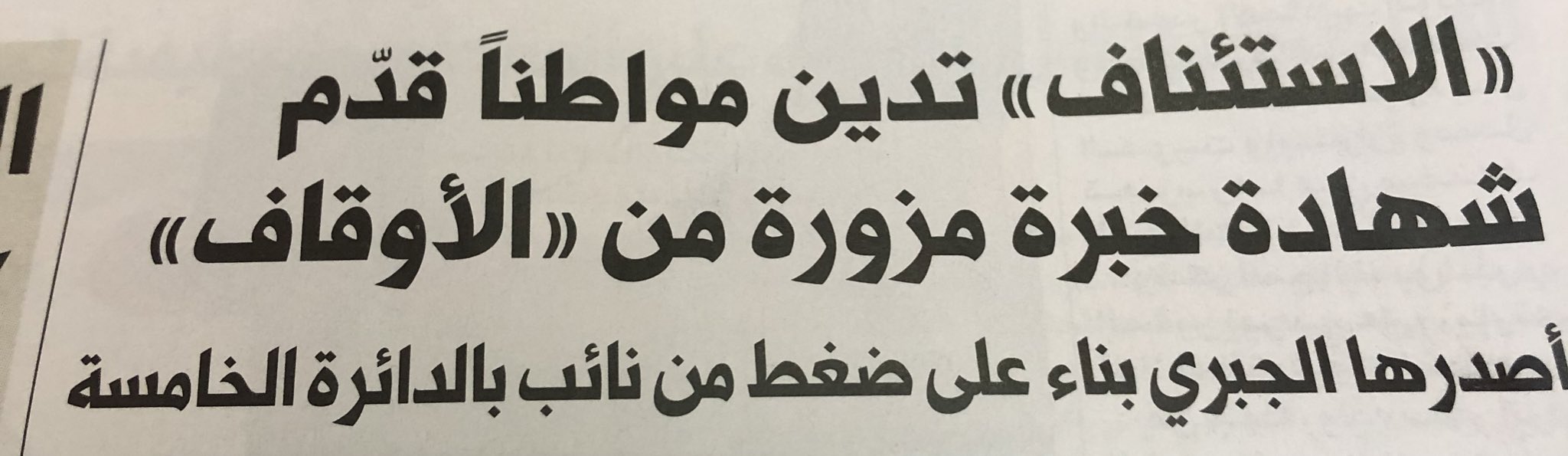 جريدة الجريدة الكويتية الاستئناف تدين مواطنا قد م شهادة خبرة مزورة من الأوقاف