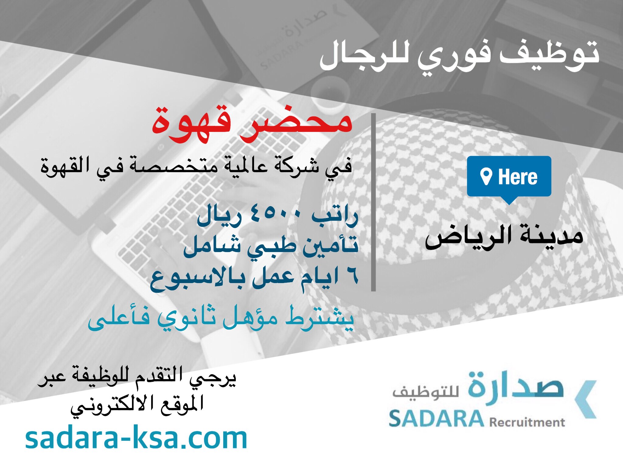 صدارة للتوظيف On Twitter وظائف مطلوب محضر قهوة بشركة كوفي شوب عالمية Https T Co Wfpabymu1x
