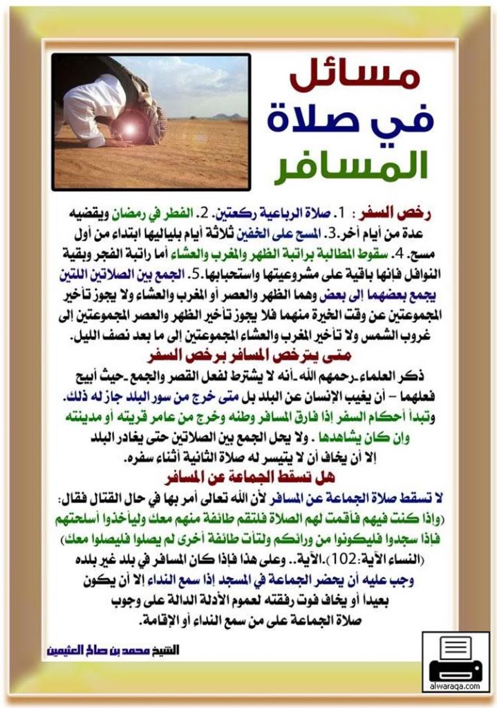 مسائل في صلاة المسافر موقع البطاقة الدعوي