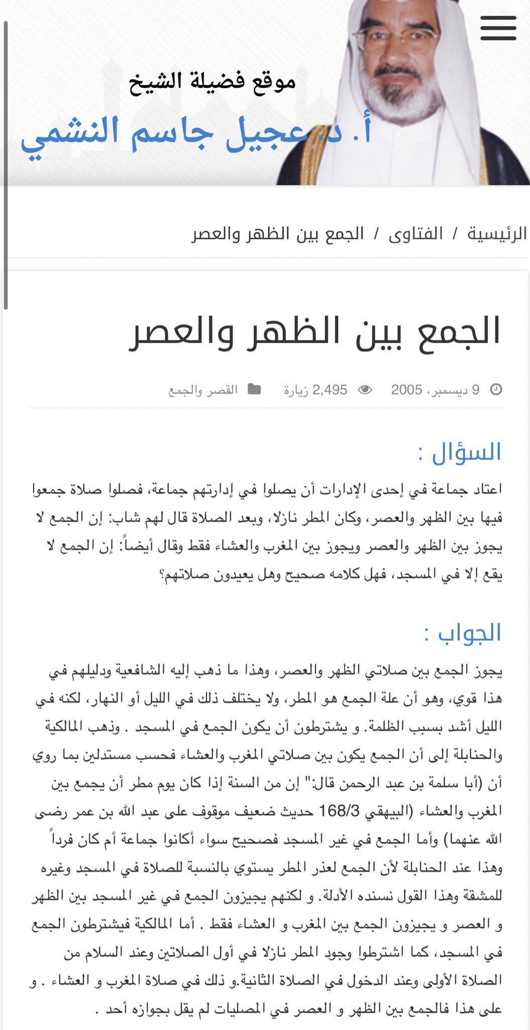 عجيل النشمي בטוויטר هل جمع الصلاة للمطر مختص بالمغرب والعشاء أم يجوز الجمع بين الظهر والعصر أيضا إدارة الحساب