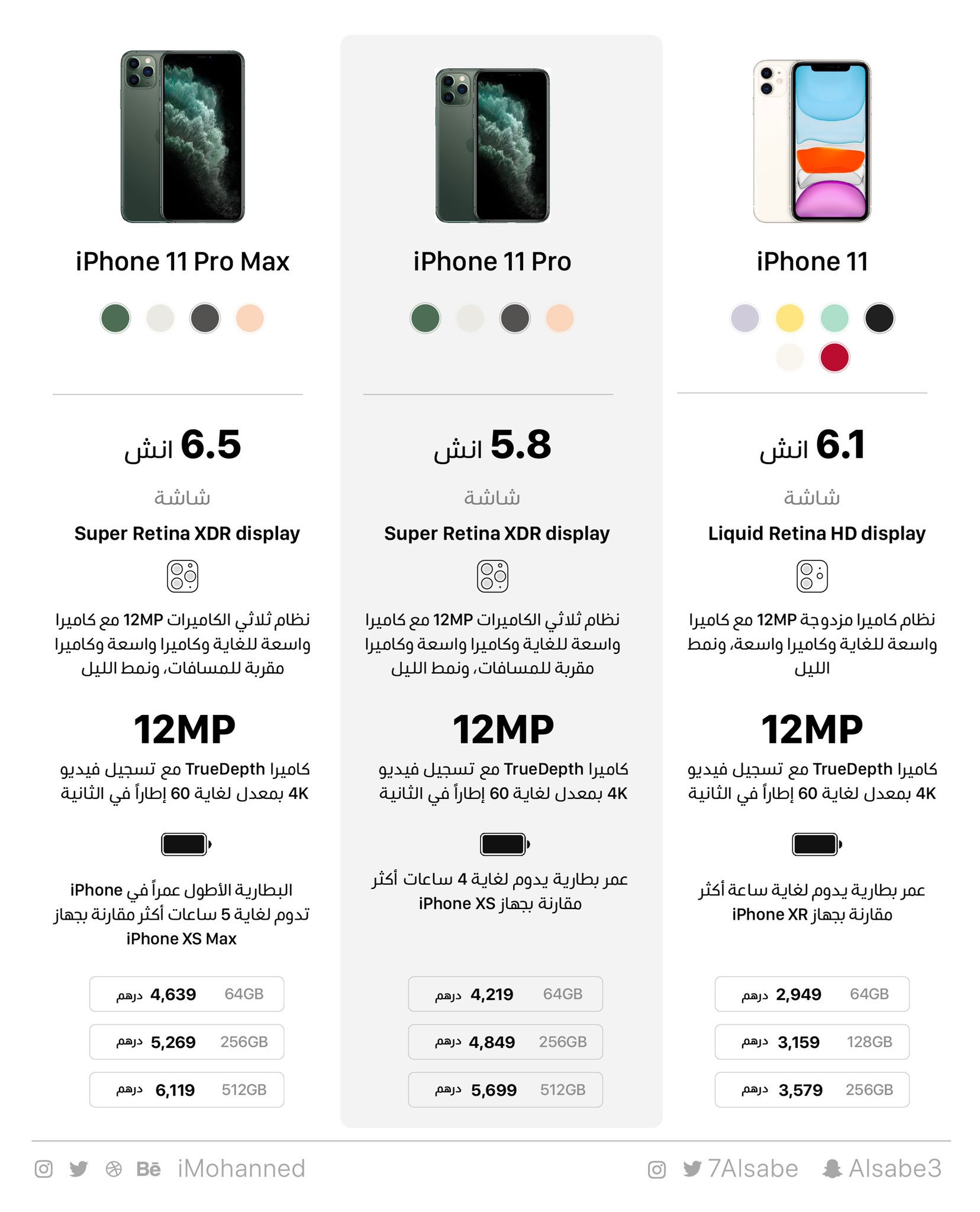 عبدالله السبع On Twitter تعرف على أهم الفروقات وأسعار أجهزة الايفون الجديدة Iphone 11 Iphone 11 Pro Iphone 11 Pro Max