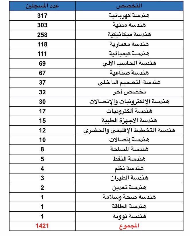 جميل البقعاوي On Twitter إحصائية نهائية للمهندسين العاطلين حسب التخصص علما ان هناك ٤٦٠ طلب توظيف من المكاتب والشركات الهندسية حتى الان للإستفادة من مميزات توظيفهم Https T Co Vqgmrzjdwk