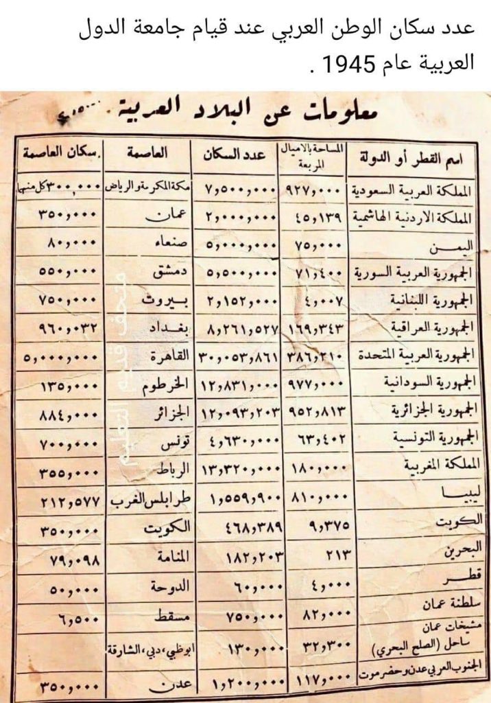 عيسى بن ربيعه V Twitter هكذا يجب أن ي قرأ التاريخ عدد سكان الوطن العربي عند قيام جامعة الدول العربية هل لاحظتم من في ذيل القائمة هناك دويلة حينها كانت