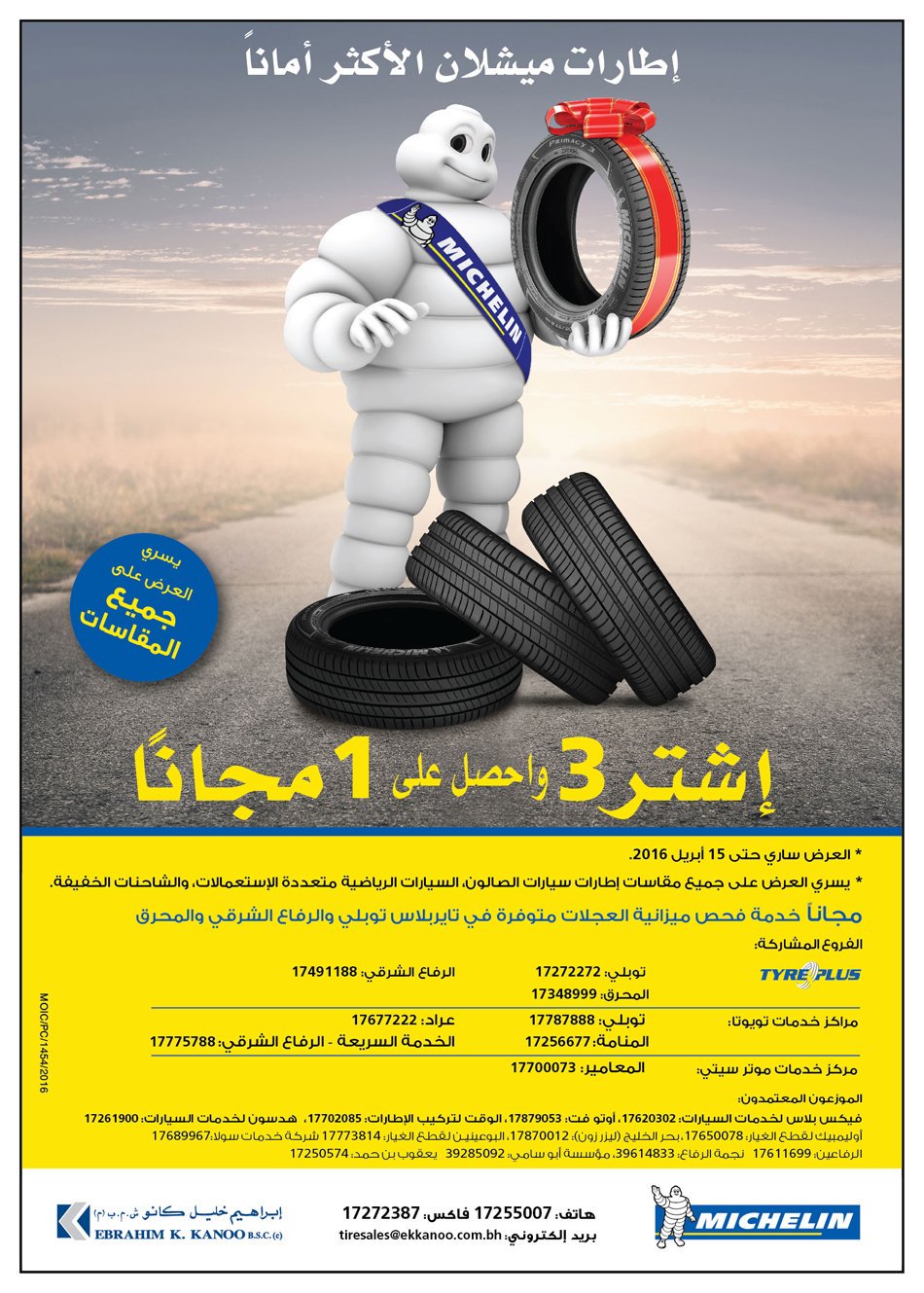Bea Media On Twitter إشتر 3 إطارات ميشلان واحصل على 1 مجانا العرض ساري حتى 15 ابريل 2016 تويوتا تايرات سيارات محركات عروض بحرين Https T Co 7cy4yxw3z3