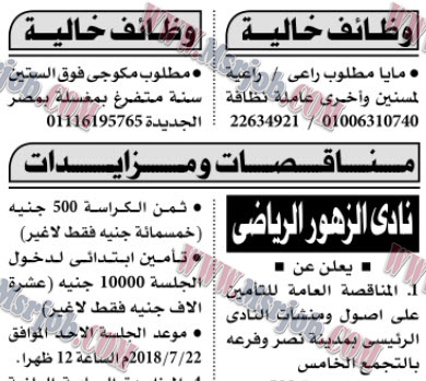 مزايدات و مناقصات نادي سبورتنج بجريدة الأهرام نادى الأسكندرية الرياضى