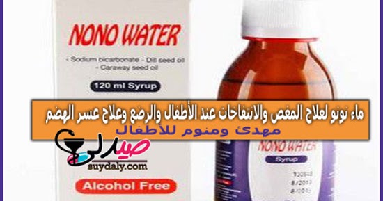 ماء نونو شراب Nono Water Syrup مكمل غذائي لعلاج المغص وعسر الهضم والانتفاخ اضطرابات الجهاز الهضمي والتقلصات للرضع وحديثي الولادة والأطفال مهدئ وهل بينيم ويسبب النعاس والنوم دواعي الاستعمال والجرعة وطريقة الاستعمال