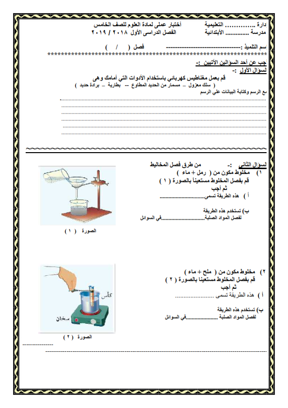 امتحان عملى علوم للصف الخامس الابتدائى ترم اول 2019 للمراجعة