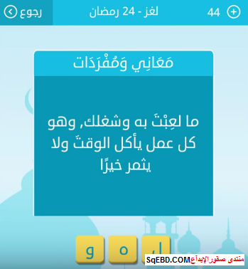 حل لغز ما لعبت به وشغلك وهو كل عمل يأكل الوقت ولت يثمر خيرا 24 رمضان من لعبة رشفة رمضانية صقور الإبدآع