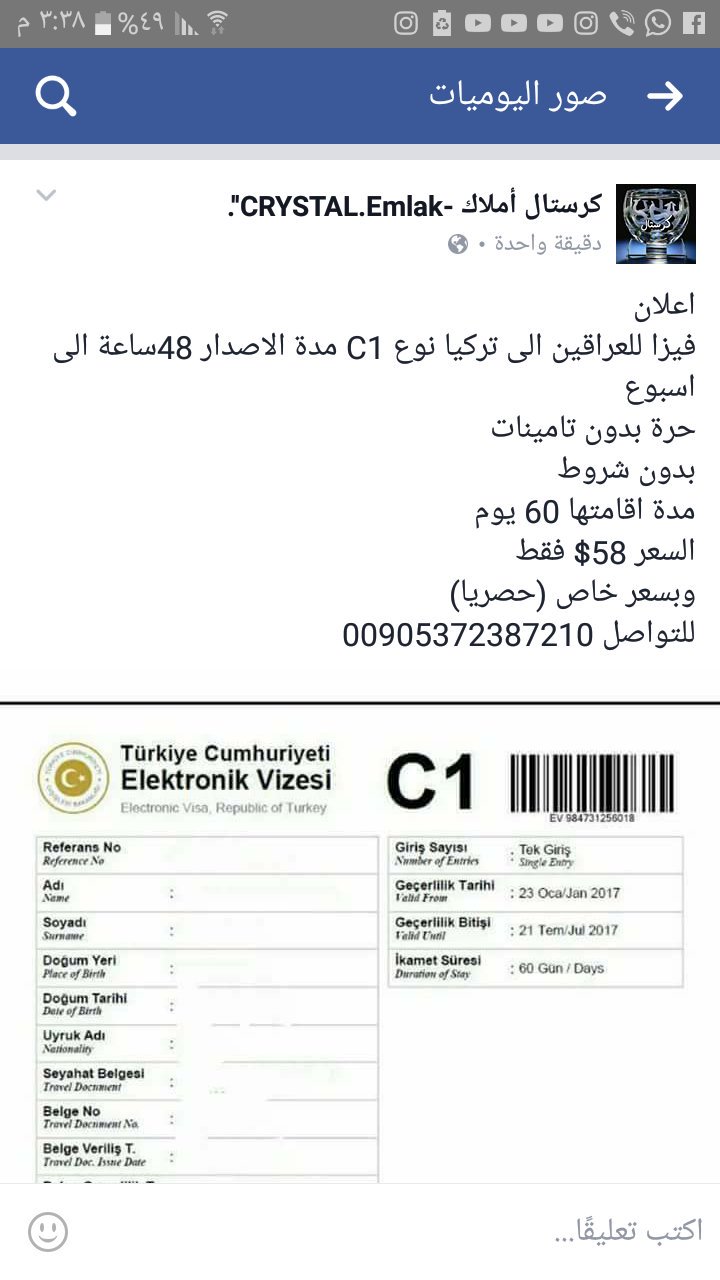فيزا تركيا نوع C1 دخول مره واحدة بدون شركة سماء ديالى للسفر و السياحة Facebook