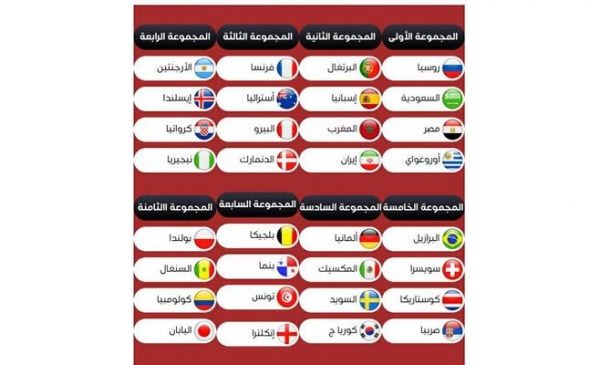 نتائج قرعة كأس العالم روسيا 2018 مجموعات صعبة للمنتخبات العربية Elfajr Org