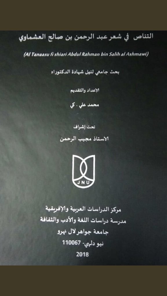 عبد الرحمن العشماوي Sur Twitter نبارك للدكتور محمد علي كي حصوله على الدكتوراة من قسم الدراسات العربية بجامعة جواهرلال نهرو بنيودلهي بالهند بإشراف د مجيب الرحمن بعدمناقشة بحثه التناص في شعر عبدالرحمن