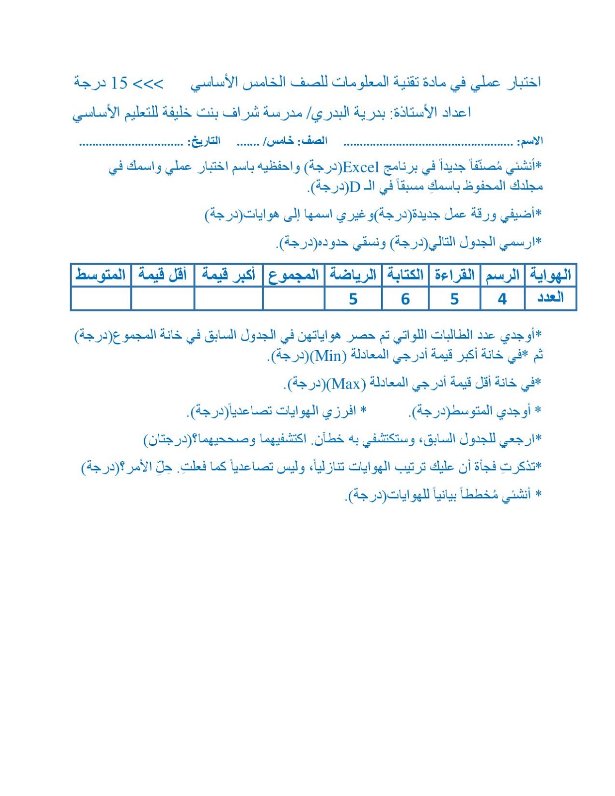 اختبار عملي في مادة تقنية المعلومات للصفين الخامس والسادس ف2
