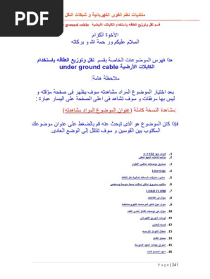 فهرس الموضوعات الخاصة بقسم نقل وتوزيع الطاقه باستخدام الكابلات الأرضية
