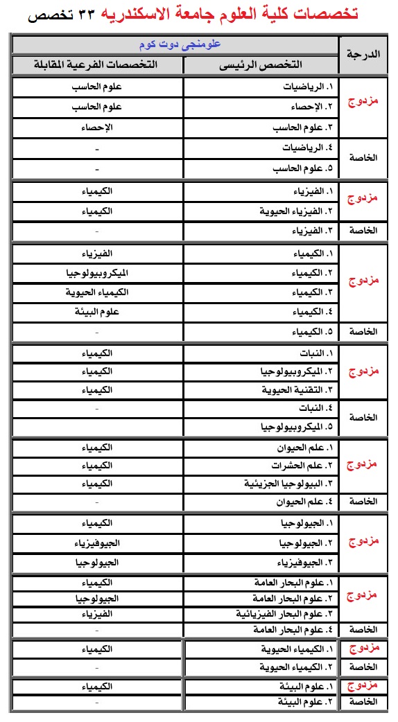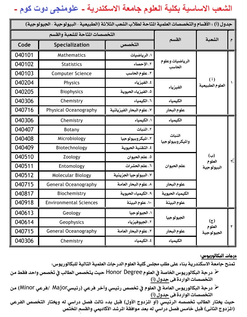 المعلومات الكامله عن كليه العلوم جامعه الاسكندريه علوم الاسكندريه علومنجى دوت كوم