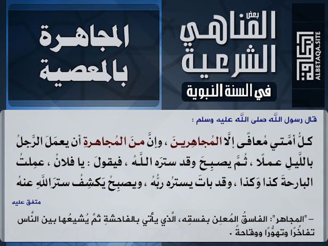 بعض المناهي الشرعية في السنة النبوية المجاهرة بالمعصية مدونة نور الكتاب والسنة