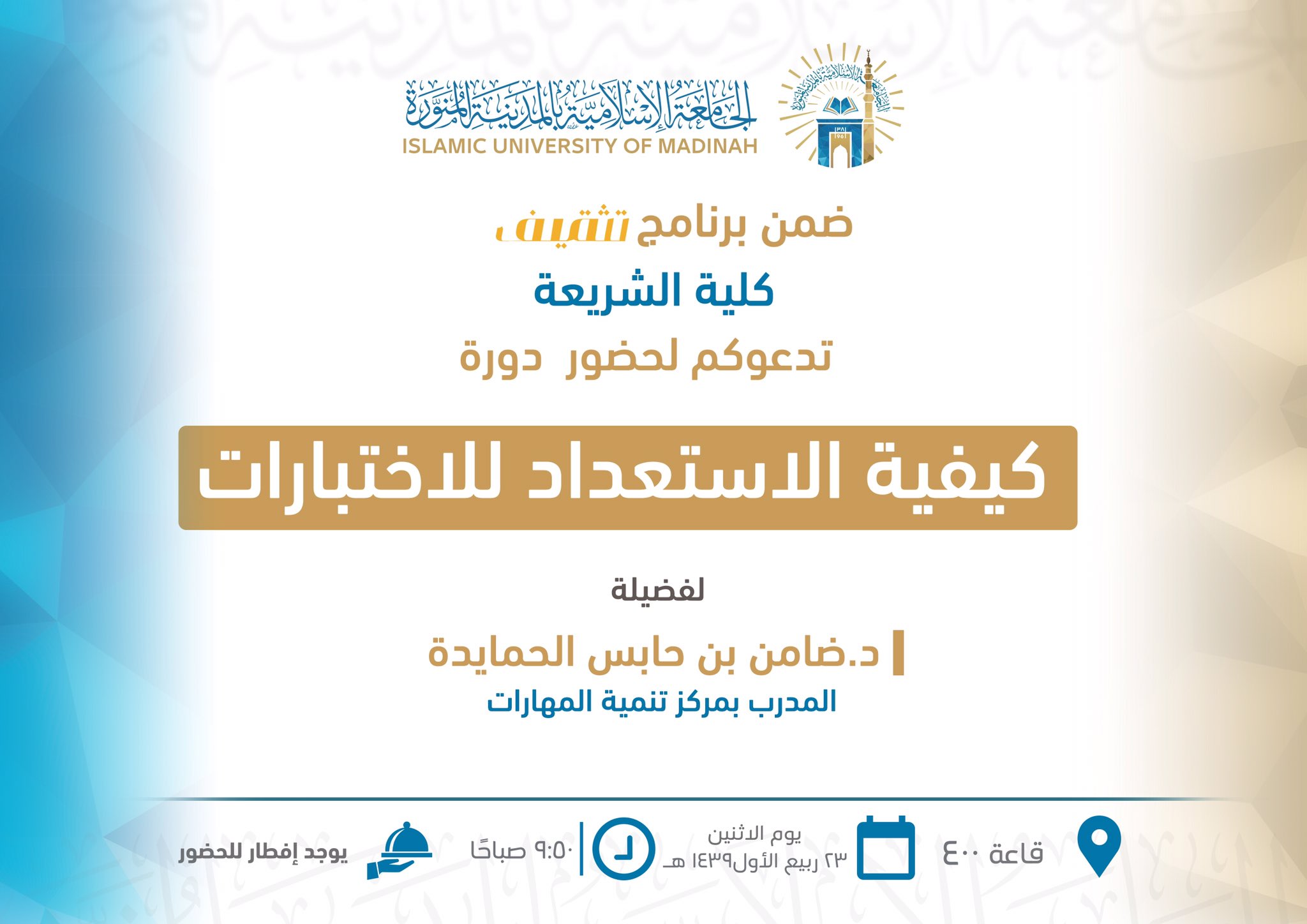كلية الشريعة On Twitter كلية الشريعة تدعوكم لحضور دورة في كيفية الاستعداد للاختبارات