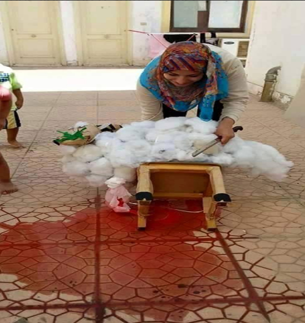 صورة اليوم منشطة روضة تعلم الأطفال كيفية ذبح خروف العيد